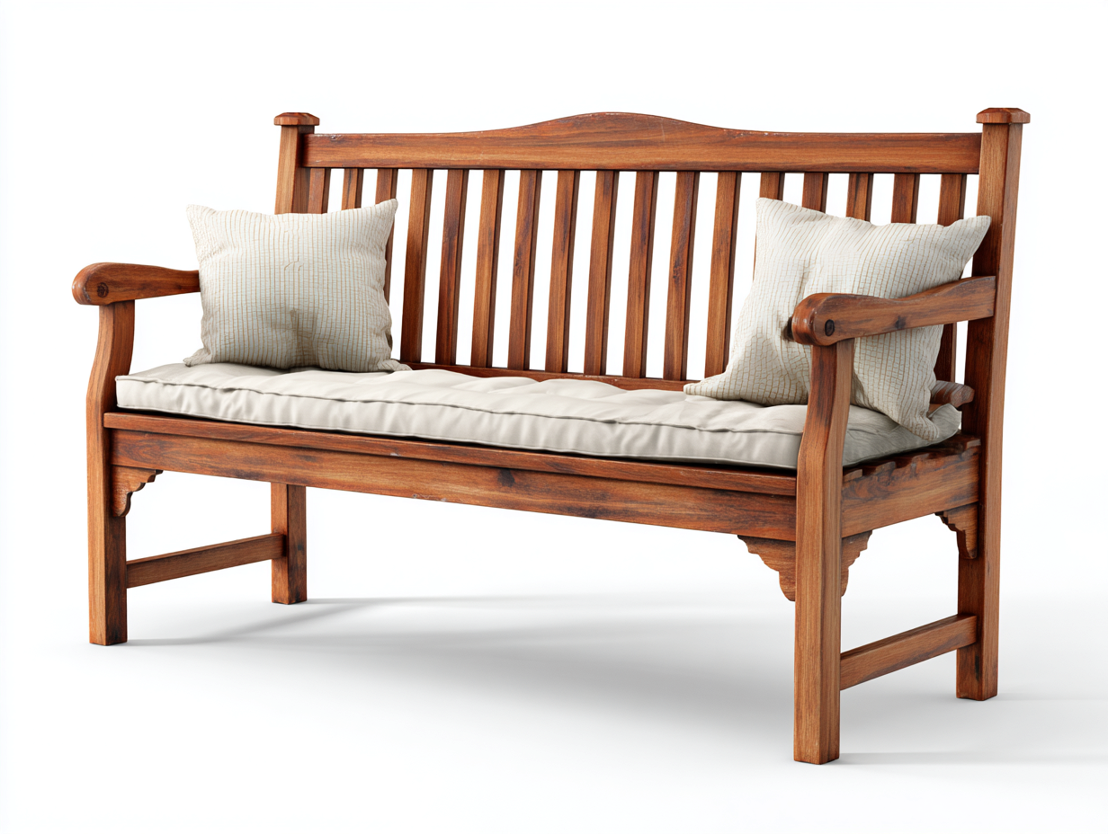 Banc de jardin en bois massif 155x58x90 cm - brun naturel et beige - assise extérieure avec dossier et accoudoirs